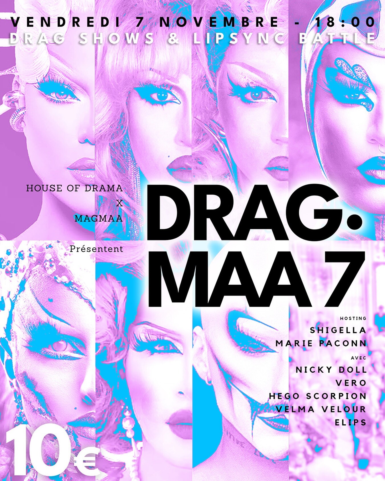 La Drag-Maa 6 et 7 débarque au Magmaa les 7 et 8 novembre 2025 à partir de 18h00 ! La soirée est organisée par le collectif House of Drama.