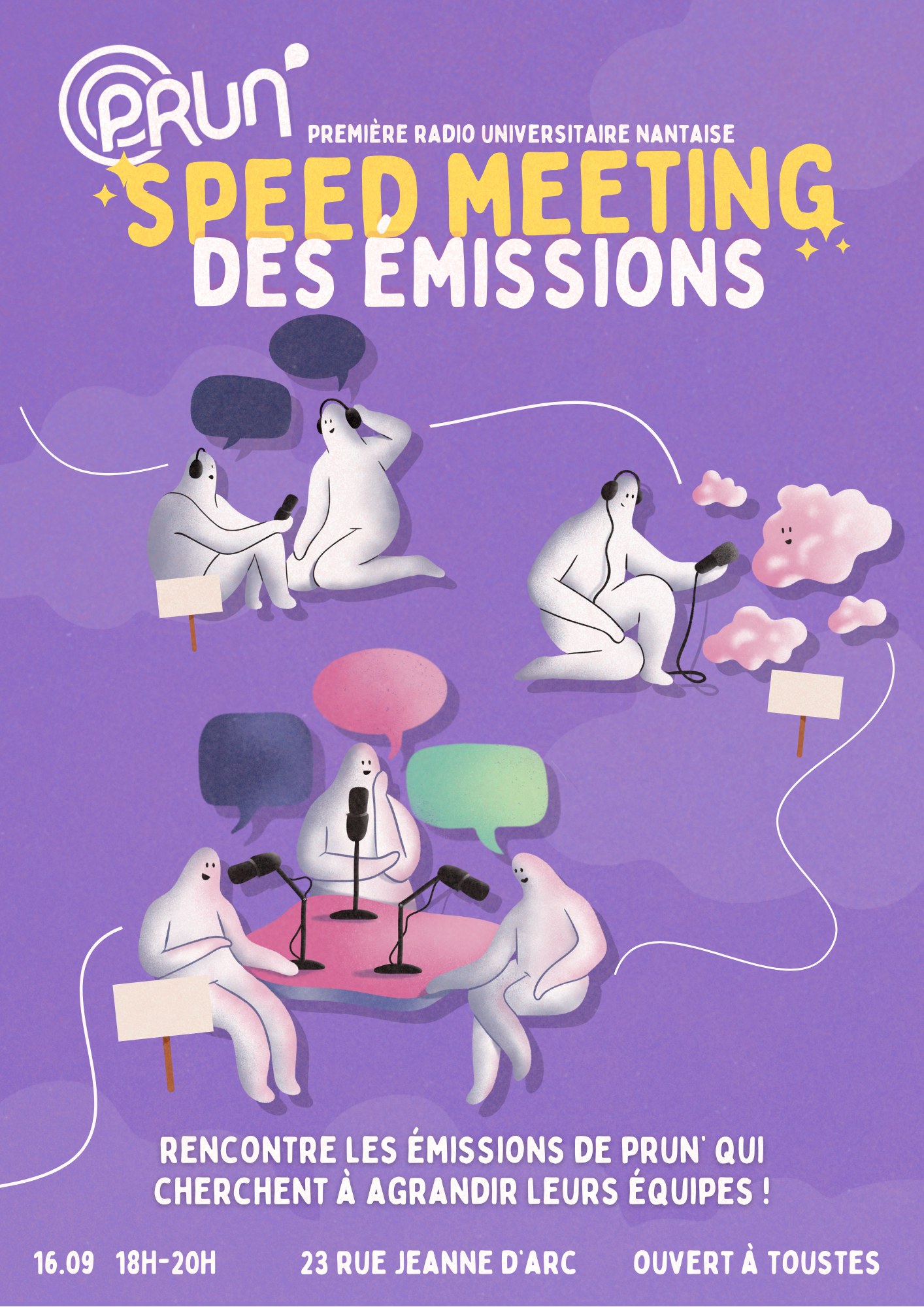 Les émissions de la radio qui cherchent à agrandir leur équipe t'attendent dans les locaux de Prun' le mardi 16 septembre de 18h à 20h. Cet évènement est ouvert à toustes, curieux·ses, auditeurices, bénévoles ou futur·es bénévoles. Viens pousser la porte du 23 rue Jeanne d'Arc !